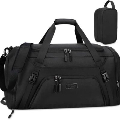 Gym Duffle Bag for Women Men 40L Waterproof Sports Bags Travel Duffel with Shoe Compartment,Wet Pocket Large Weekender Overnight Toiletry Bag,Black