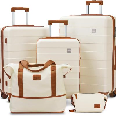 3 Piece Luggage Sets,Suitcase with Spinner Wheels,Luggage Set Clearance for Women, Lightweight Rolling Hardside Travel Luggage with TSA Lock (Beige, 5PCS)