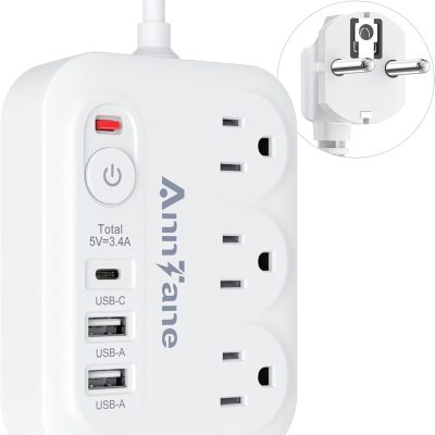 European Travel Plug Adapter with 4FT Extension Cord, (Not for UK) US to European International Plug Adapter Travel Essentials France Germany Greece